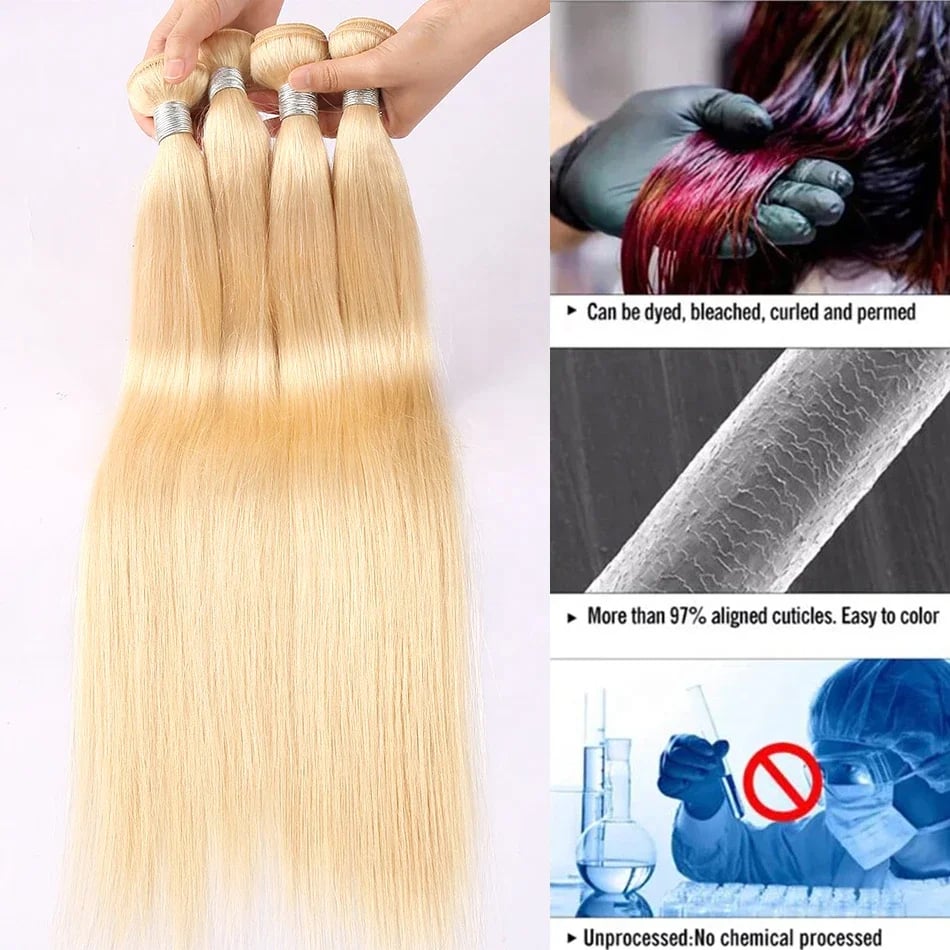 Raw #613 Platinum Blonde Raw Cuticle Human Hair Weft straight Bundles, 100% Raw Human Hair: Absolutely no chemical processing, silicones, or synthetic mixes. Pure, unadulterated beauty. Intact Cuticles: Each strand's cuticle is aligned and facing the same direction, guaranteeing minimal shedding, tangling, and supreme longevity.