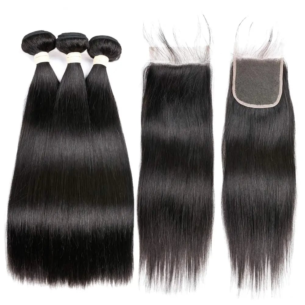 Virgin Hair Bundle with Closure - Premium Quality: Get shiny, soft 100% unprocessed human virgin hair in natural black. This bundle with closure is dye and bleach-friendly (up to #27), restyleable, and guaranteed tangle & shed-free.